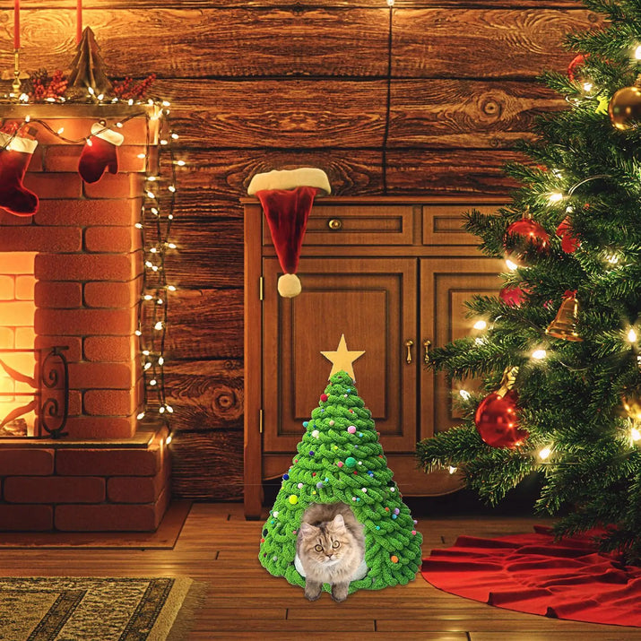 CuddTail™ 2025 Handmade Christmas Tree Cat House – DIY Warm Winter Bed & Craft Kit for Cats and Small Dogs