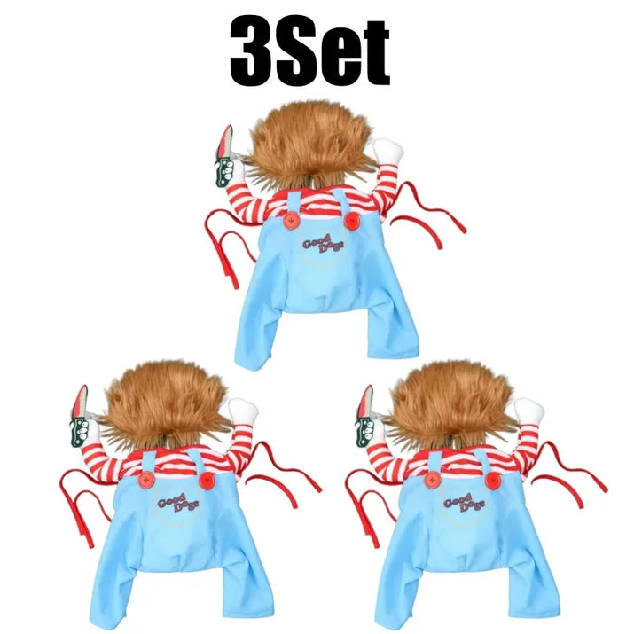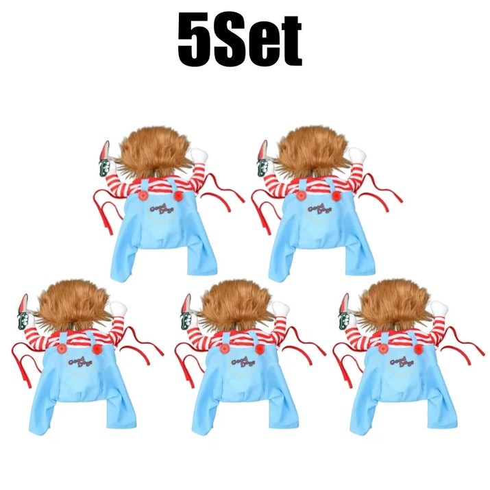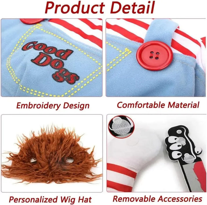 CuddTail™ Killer Pet Halloween Costume – Scary Dog Outfit with Knife & Wig for Halloween or Christmas Parties